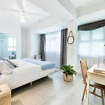 la spiaggia rocciosa è bella, il personale dinamico, le camere riscaldate. ci sono letti morbidi, un balcone, un ripostiglio e una scrivania nella camera. la piscina è bella e c'è un ristorante delizioso in loco. dista 20 minuti a piedi dal centro.
